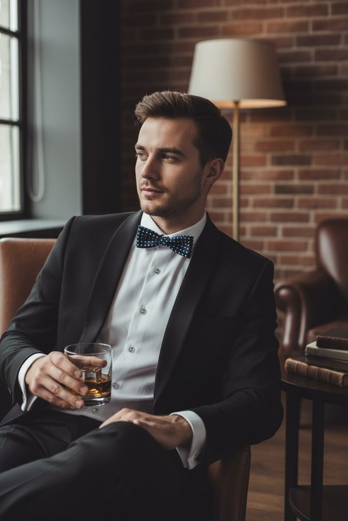 Предварително Синя памучна папийонка на бели точки 10 см върви перфектно с всеки фрак или смокинг риза. На гърба на папийонката е закачена кукичка с капси, благодарение на което дължината може лесно да се регулира според обиколката на врата ви.