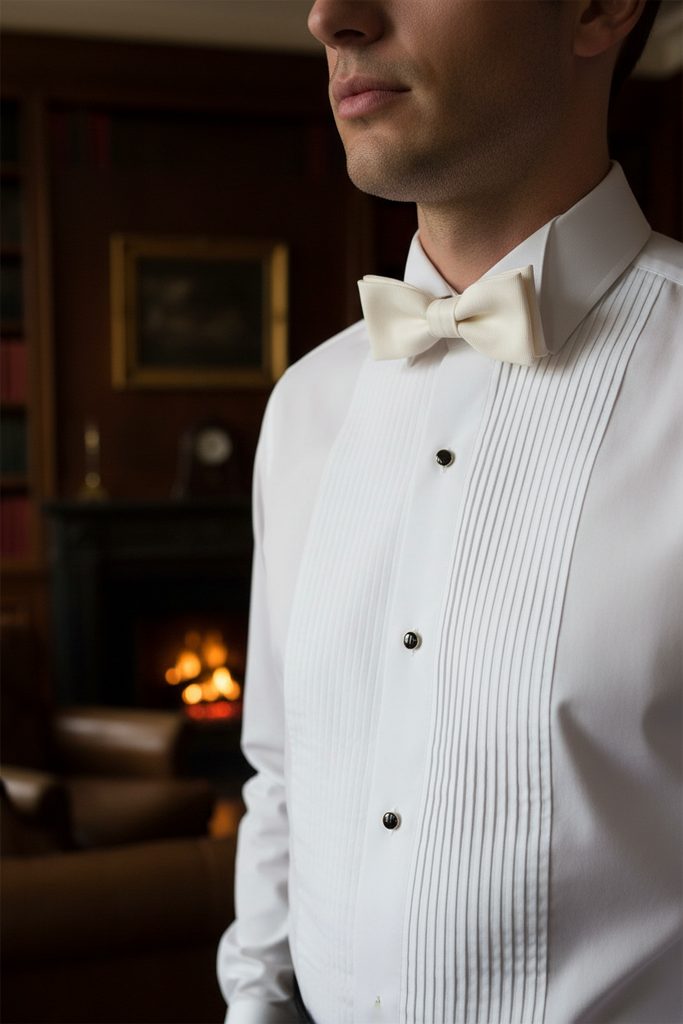 Предварително Структурирана кремава папийонка 10 см върви перфектно с всеки фрак или смокинг риза. На гърба на папийонката е закачена кукичка с капси, благодарение на което дължината може лесно да се регулира според обиколката на врата ви.